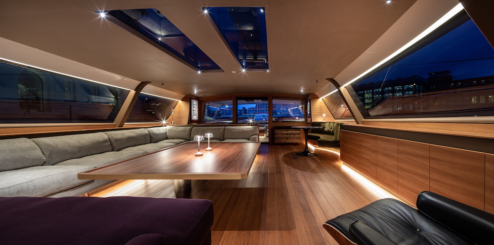 Ha cominciato con barche lunghe 60’ per disegnarne poi una grande più del doppio. Ma ogni barca ha un suo comfort dinamico e assoluto, ha un suo stile. Ogni barca ha una storia a sé, indipendentemente dalle dimensioni. Così come la dinette in un 60’ è il corridoio di casa, il soggiorno, il luogo dove tutti passano e che tutti vedono, in una dimensione maggiore diventa più nobile, ampia luminosa ma rimane lo spazio dove tutti si relazionano, passano e si fermano. Le dimensioni più generose fanno rileggere gli spazi, ma non cambiano il percorso progettuale. «Si deve sempre inseguire la purezza della luce, vivere l’armonia di linee e volumi, disporre della tecnologia, senza che si mostri con invadenza. Ma il segreto è aggiungere emozione all’ambiente, se questa non emerge allora vuol dire che non sto facendo il mio lavoro»