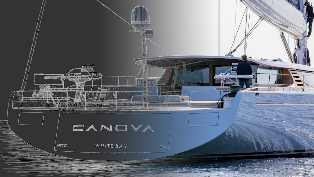 Per mostrare il Canova ha realizzato un modellino in marmo. Ha voluto unire i due mondi: l’arte e la nautica. Per realizzare la barca ha studiato dettagli e volumi, ma la parte più difficile è stata renderla dinamica. «Quando progetto barche, lavoro con il carbonio, con l’alleggerito. Uso materiali nobili, naturali, ma sempre alla ricerca della leggerezza. Quando invece parlo di arte penso che la sua forza sia nella pesantezza. Vedo l’arte come oggetto architettonico, dove prima di essere decorazione, ha la funzione di portare i carichi a terra». Allora perché non realizzare una scultura che riprenda il lavoro svolto, i volumi tracciati, i calcoli ripassati? Una scultura in marmo che immortala questo lavoro. Una semplice opera ricavata dal vento e dal mare. La leggerezza del messaggio è esaltata dalla pesantezza del materiale. Canova è il nome della barca. Vento è il nome dell’opera.