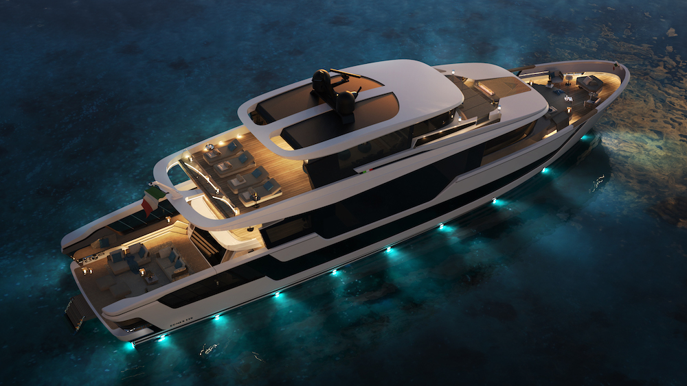 In nomen omen. Tecnomar ha battezzato Domus il suo nuovo concept per un 36 metri particolarmente innovativo, pensato soprattutto per il mondo del charter o per chi ama navigare in compagnia. Oltre alle cinque cabine ospiti, Domus dispone infatti di ampi spazi all’aperto e di zone comuni di grande fascino. Tra gli elementi più innovativi di questo progetto ci sono il beach club di 36 mq che, oltre a rappresentare il primo punto di contatto per salire a bordo, è il passaggio diretto per accedere alle aree del ponte inferiore e del ponte principale. Di grande interesse anche la parte opposta del lower deck che, a prua, ospita un’area gym attrezzata e un’area living servita da zona bar.