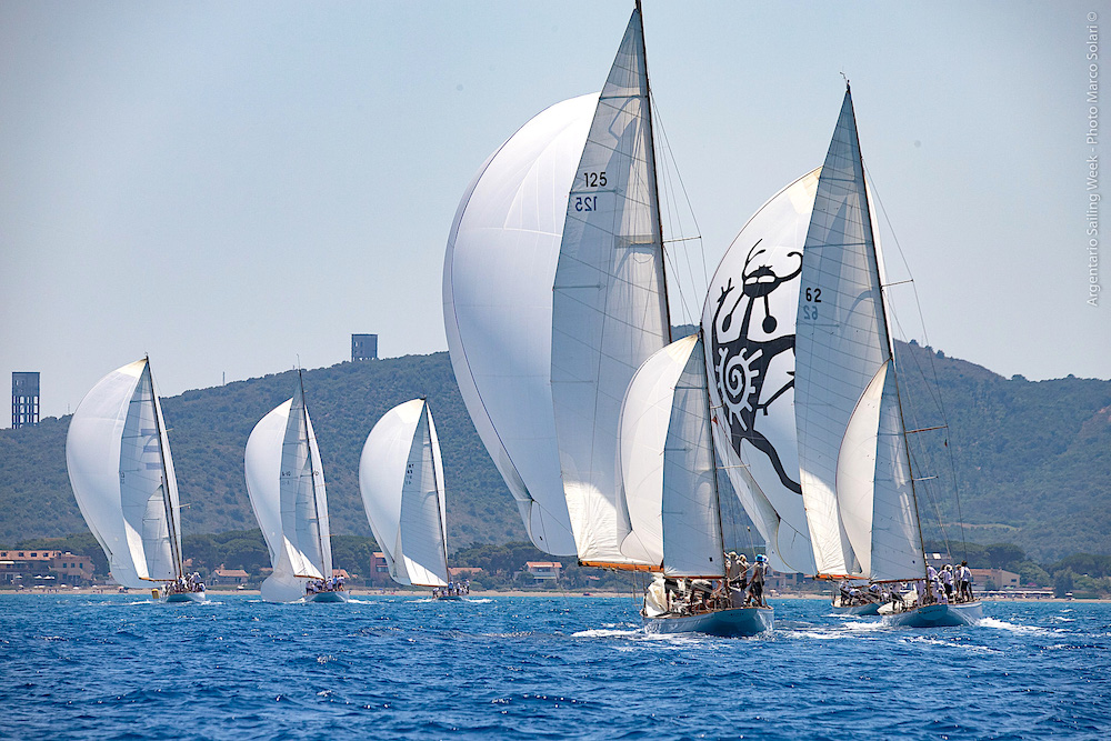 Ma alla 21a Argentario Sailing Week erano in regata anche alcune delle imbarcazioni disegnate da William Fife III. Come Sumurum, ketch Marconi di 28,60 metri varato nel 1914 dal cantiere William Fife Fifw & Sons di Fairlie, Scozia e Hallowe’en varato nel 1926.