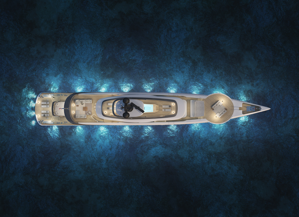 Questi i dettagli più innovativi: la zona beach club, unica nel suo genere, presenta alte pareti laterali completamente vetrate per proteggere dalle giornate di vento e un’enorme piattaforma per prendere il sole, servita da una moderna scala da bagno per l’accesso al mare. Sul ponte superiore, le aree esterne sono collegate agli interni da una porta a vetri completamente scorrevole che permette la fusione tra il salone superiore, il salone esterno e la zona pranzo. L’area “touch and go” sovrasta delicatamente la silhouette dello scafo, mentre sul Sun deck una vasca Jacuzzi garantisce il massimo relax agli ospiti.
