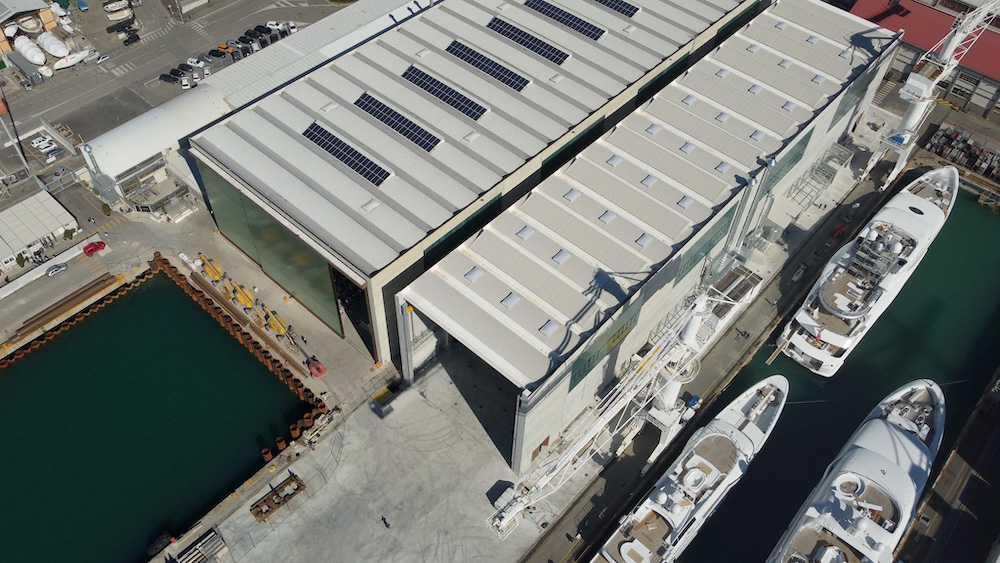 Le opere di ampliamento ed ammodernamento del cantiere prevedono, infine, la copertura del bacino esistente mediante una struttura fissa, che permetterà al nuovo capannone di ospitare la costruzione di navi fino a 130 metri di lunghezza, e la costruzione, già in corso, di un nuovo bacino di costruzione lungo 145 metri e largo 50 metri, dotato di nuova “barca porta” che consentirà il refit di circa 8 yacht in contemporanea.