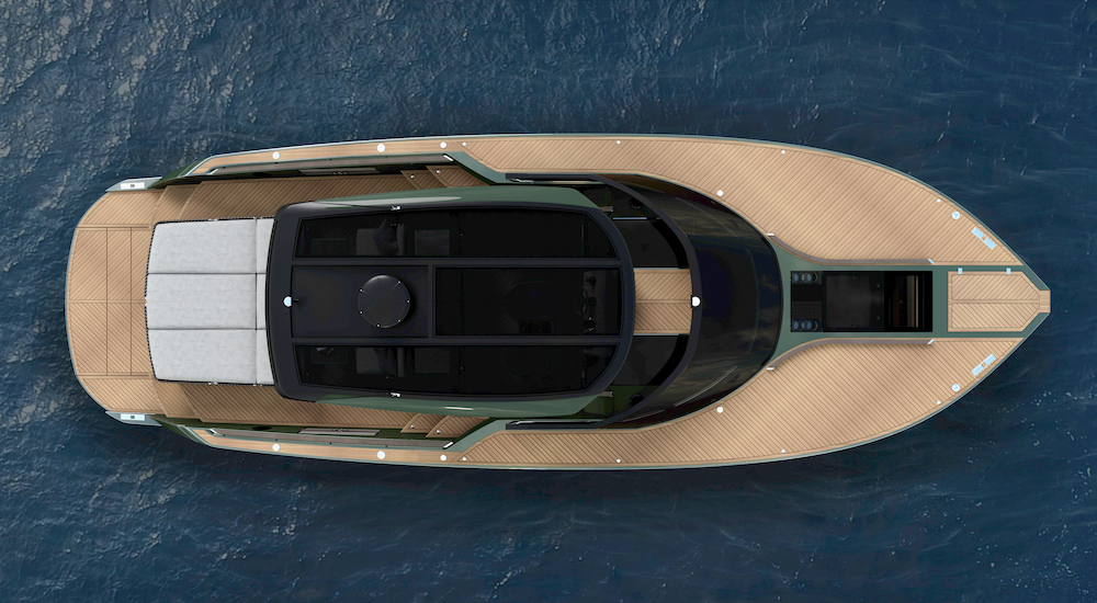 Gli interni offrono ospitalità a quattro persone e dispongono di ampi spazi storage. Il nuovo modello sarà disponibile in versione Open oppure T-top, inoltre la motorizzazione prevede diverse opzioni sia entrofuoribordo con piede poppiero che fuoribordo.