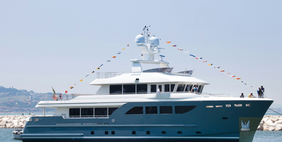 Storm questo il nome del nuovo yacht conferma la solidità del cantiere anconetano, leader mondiale nel mercato degli yacht dislocanti in acciaio e alluminio, e segna un nuovo successo con la prima consegna di un’imbarcazione superiore ai 100 piedi. Con questa consegna infatti Cantiere delle Marche inizia una serie di vari tutti over 100’, avendo in costruzione ben due Darwin Class 102’, un Nauta Air 108’, un Nauta Air 111’ .