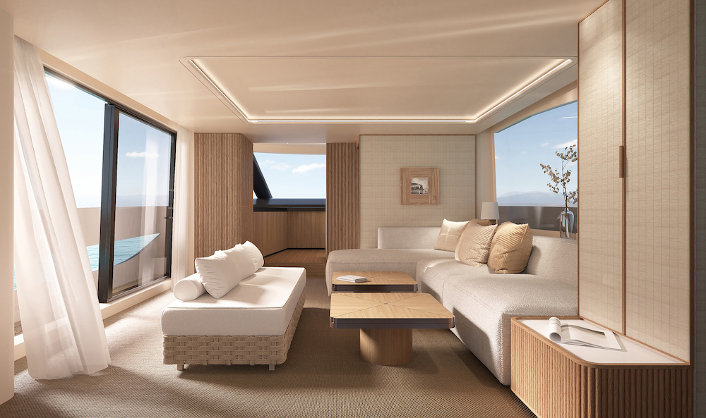 “The Seadeck 6 delivers the experience a future-focused yacht with a holistic vision that significantly reduces its carbon, water and waste footprint. It guarantees the utmost in comfort and longevity with no waste throughout its entire life cycle, from product to transport to use and dismantling. It combines all the expertise we’d built up in the hospitality and residential architecture sector with huge in-depth materials research”.