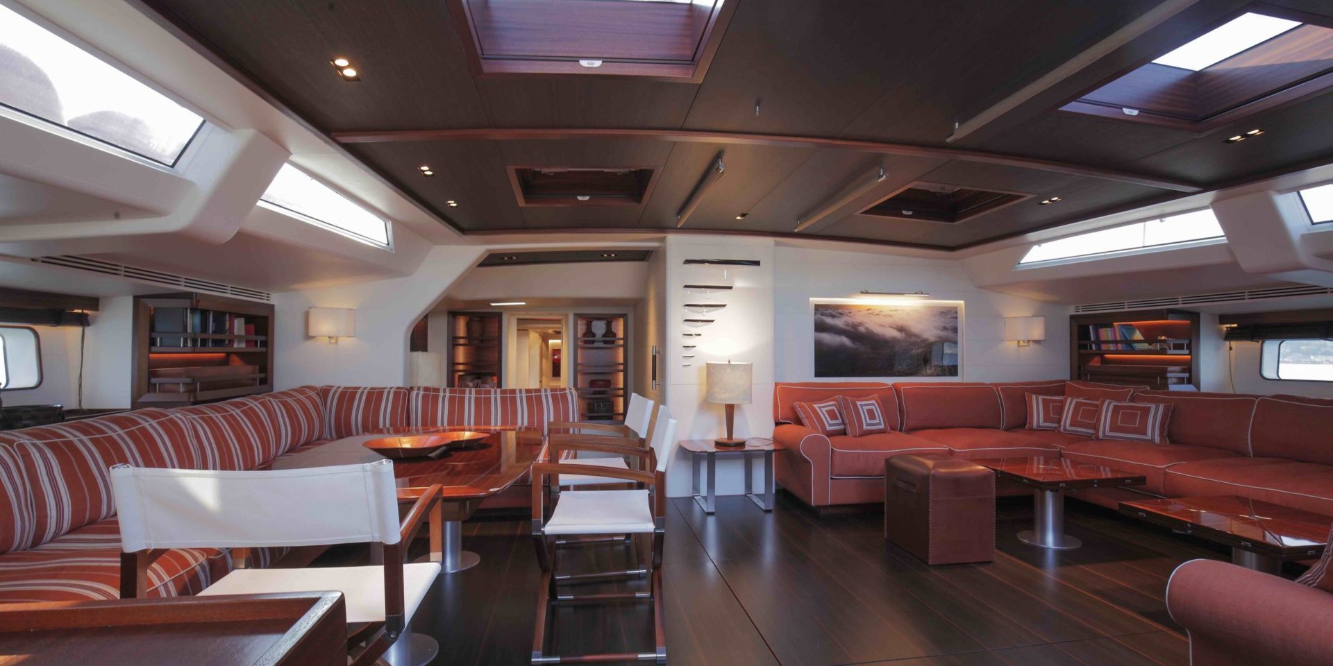 The unusual design of the topsides is also reflected in the yacht’s profile, masking the deckhouse which, although very subtle anyway, hides interiors with very good ceiling heights.