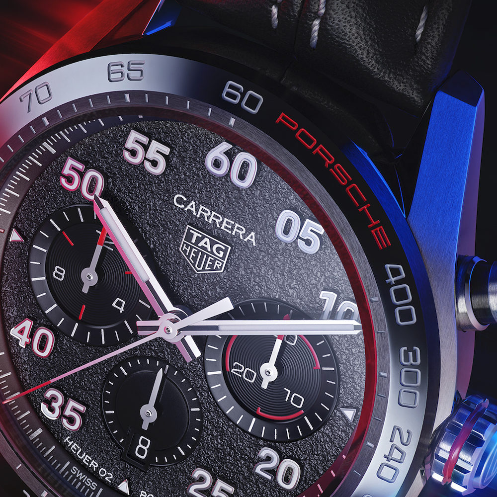 Carrera: an icon of a name that has been associated with TAG Heuer and Porsche for generations – so it was a natural choice for the first creative product collaboration. A tribute to the heritage of two legendary brands, both on and off the racetrack, the new chronograph offers a first glimpse at what they can achieve together.