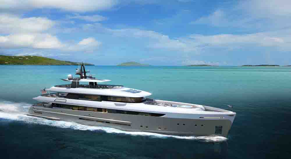 Additionally, with her all-aluminium construction, semi-displacement hull form, shallow draft, and extensive long-range capability, many prospective owners found the vessel well-outfitted for their Caribbean cruising requirements. FLIBS was also the perfect venue to introduce another new and important project for Admiral: the “Vestal” series designed by renowned American firm ‘Setzer Yacht Architects’. Led by Ward Setzer – arguably the most acclaimed large-yacht designer in the United States – the Setzer team has produced dozens of award-winning projects constructed at premier shipyard in the United States and around the world. Partnership with Setzer for the Vestal Series was thus a logical pairing for Admiral, which will aim to significantly increase its U.S. and Latin American presence through the new series introduction, which has been developed to address American taste preferences and technical requirements while also offering an “Italian Touch.”