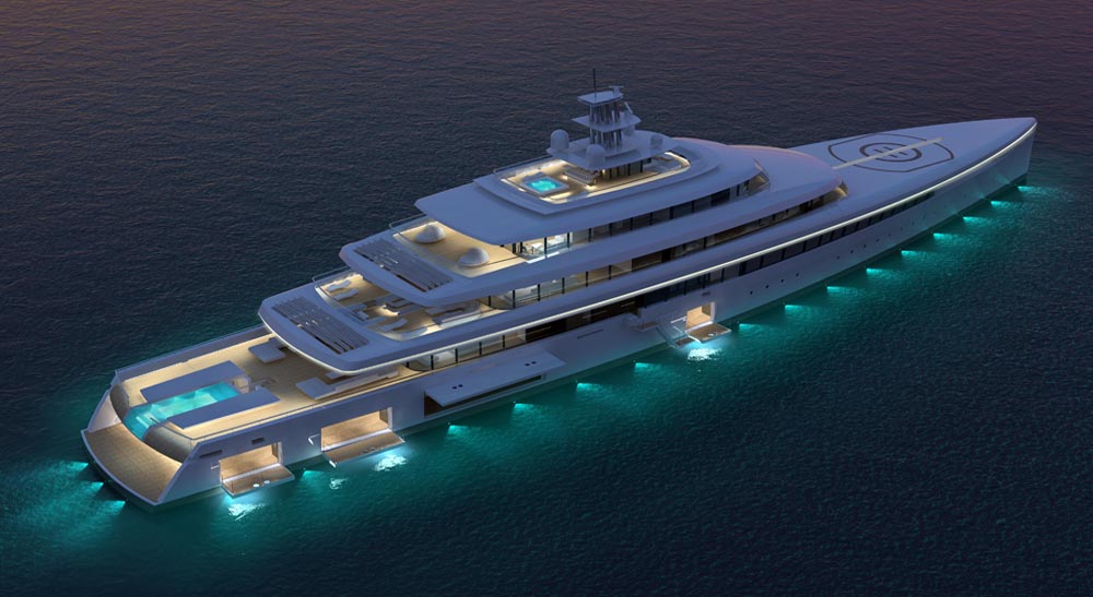 Acquaintance, as she is known, has been honed to deliver 20% lower fuel consumption than a regular yacht of the same size thanks to a high-performance hull and the fact each of her four 1760 MTUs are coupled with twin 3500kW electric motors. Acquaintance can accommodate 24 passengers in elegant surroundings. She also has a swimming pool with a glass aft-facing wall and transparent bottom which is also the ceiling for the spa on the lower deck.
