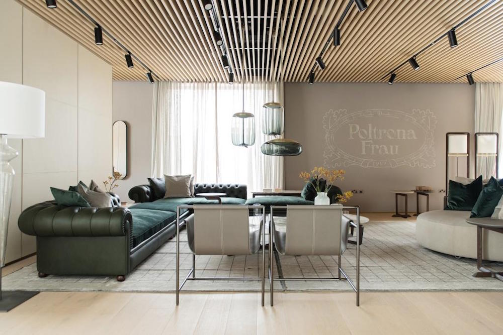 Over 100 years of history and a new space through in which the Italian brand redefines its tradition. Projects introducing new ways of experiencing the home and the workspaces. The notion of comfort, a crucial element in all the brand’s products, also evolves to take account of contemporary life and the hybridisation of living spaces with home working. The Let it Be project by Ludovica + Roberto Palombais a statement of the spirit of the brand. A system of free sofas that can be completed with lots of accessories that multiply its functions and turn it into an island of total wellbeing where you can find your own pace. The two designers adopt the same philosophy for the Mr. Moonlight bed. Iconic products are also protagonist such as the Chester sofa. The Chester Line system, redefined on the basis of the original project by Renzo Frau, can be configured in multiple different ways and is completed with the Fidelio lamp and side tables. Throughout the collection, Poltrona Frau leverages its historic mastery of materials, all of the utmost quality, bringing out their natural and intrinsic expressive power. As with the Jane table byJean-Marie Massaud, where the surface is a huge irregular sheet of precious Emperador marble that appears to float in space. Throughout the showroom features the new collection of Poltrona Frau rugs. The company borrows old handicraft techniques from distant worlds with whose values it identifies. It then revamps these age-old traditions with colours and decorations using natural fabric fibres like wool, jute, and bamboo silk.