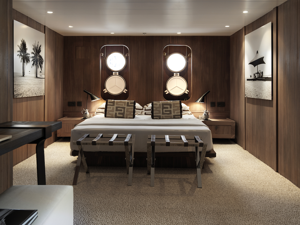 While the transition from residential to yacht design was gentle and almost natural, the move from motoryachts to sailing caused slightly more upheaval. “It was probably the biggest challenge because a sailing yacht has to be very high performance and so there are enormous restrictions in terms of weight, materials and flexibility: they are two entirely different worlds. So designing a sailing yacht was very interesting because we really were being confronted with the unfamiliar”. But the sisters were in no doubt when it came to the materials they wanted: “Lots of wood – wood with character from brushed pine to chestnut and industrially etched teak which we used on the sailing yacht. We love playing around with pairings because it gives us freedom and you can use wood on many different fronts. For one project, we even went so far as bringing old parquet aboard as it had its own story, its own soul, and warmed the space. It is quite an unusual thing to do in yacht design and the result was magnificent because that wood seems to have always been part of the boat and lent it a different kind of charm”.