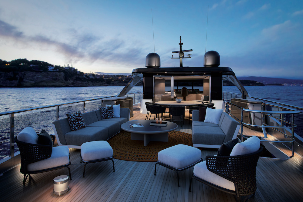 Bernard Olesinski provided the naval architecture while Pininfarina did the design of what is essentially the nautical equivalent of a crossover vehicle. The game-changing superfly and that open-plan space on the main deck are at the very heart of the design.