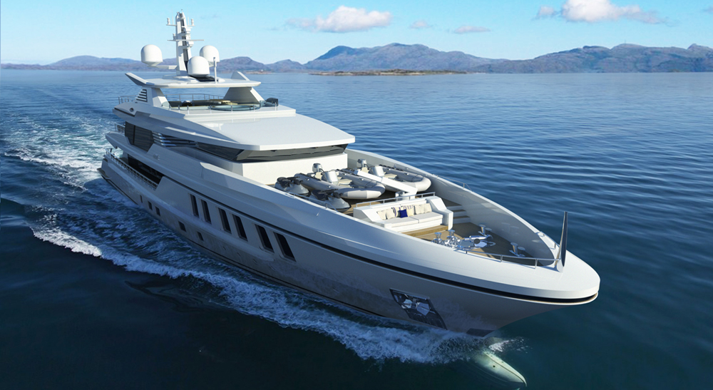 … is part of a new range from the yard founded in 2001 by current CEO Mehmet Karabeyoglu (Mohammed Al Barwani is now the majority shareholder in the company). Developed in collaboration with H2 Yacht Design, the new model offers spaces and solutions normally the domain of much larger craft. These include a large beach club and great swathes of glazing for unique views from the owner’s suite. There is a hot tub in the middle of the top deck as well as a wet bar while the main deck is home to the saloon and dining area. The upper deck has a generous lounge area, and there are two VIP and two guest cabins on the lower deck. There’s also a further aft cabin. The new 47-metre will splash by the end of 2016.