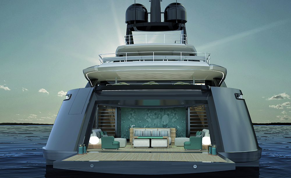 Built from aluminium, Vector will be powered by four MTUs coupled with Kamewa waterjets, giving an ocean-going range at her 14-knot cruising speed. Her Team for Design by Enrico Gobbi interiors (who pens also the exterior design) remain a closely-guarded secret, however. All we know so far is that Vector will have accommodations for 12 guests and 13 crew. She’ll also comply with the ultra-strict Rina Green Plus class notation, making her sustainable as well as stunning.
