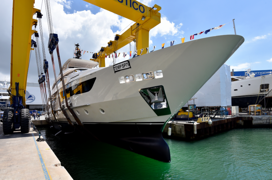 Sanlorenzo launched the 14th model of the SD126 line, a semi-displacement superyacht in fiberglass of 38 meters in length, named Sim Sim.