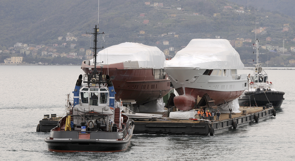 The first two models in the new 52Steel rang – 52 meters long steel superyachts – were moved, with the help of a barge, from the port of Viareggio to La Spezia. La Spezia’s new production site is a large sized, fully equipped area with direct access to the sea, allowing for the design and production of 40 to 80 meters long metal boats.