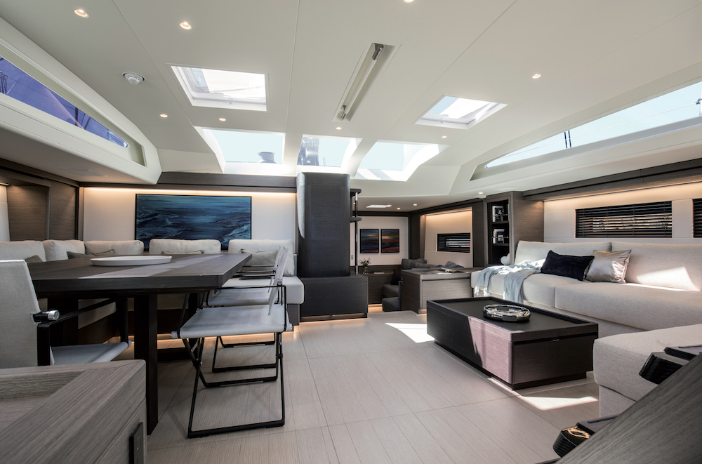 In other words, the tweaks required to make Seatius a fast, safe go-anywhere yacht were confined to longitudinal jib tracks and hydraulic cars, plus a fixed bowsprit with integrated anchor arm and fitting for the gennaker tack line and furling code zero. More extensive modifications were made to the aft section which was adapted to suit the owner’s requests.