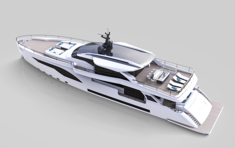 The WIDER 125 will include a full beam master stateroom on the main deck with a large opening terrace together with owner’s study and gym (or sixth cabin, depending on personal preference. This is a unique feature for yachts of this size and will be particularly appealing should the owner decide to place on the charter market). Guests will be treated to four lavish staterooms that stretch further aft than on a traditional motor yacht of this size, well into the area usually reserved for an engine room.