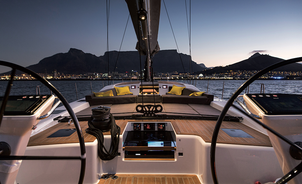 A sexy body and a competitive soul. That was Marcus Blackmore’s succinct but apt description of what he wanted from his newly-delivered SW82 supersailer and, of course, exactly what she turned out to be as she splashed at the Southern Wind Shipyard in Cape Town, under the watchful gaze of a local sea lion. Founded exactly 25 years ago by Willy Persico, the South African yard’s latest launch brings to three the SW82s it has built, with Ammonite following in the successful wake of Feelin’ Good, splashed in July 2013, and Grande Orazio, on the water since January 2014.