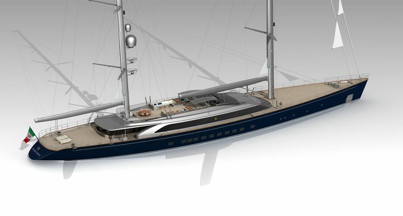 The spacious 30 meters guest area, situated on the main deck is one of the strongest elements in Sybaris and it is directly connected to the indoor lounge through a sliding glass door. Always dealing with space, it is important to highlight the large size of Sybaris’ fly, as it reaches 18 meters in length. Built entirely in aluminum, Sybaris is provided of very sophisticated equipment with carbon masts signed by Rondal (heights are respectively 72 and 62 meters), capable of carrying a total sail area of 3000 square meters. Another important technical characteristic is found in the reduction of on board vibrations as Sybaris will be the first Perini equipped with 3 Variable Speed Generators.