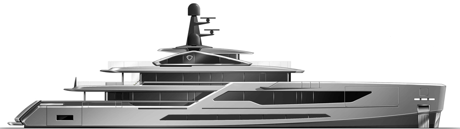 This is the first 58-metre model, a fantastic addition to the fleet of the Italian shipyard. The hull will be built in steel with aluminium superstructures; the exterior design is by Francesco Paszkowski, while the interiors are by Francesco Paszkowski in collaboration with Margherita Casprini.