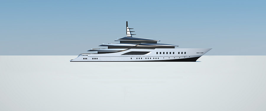 The restyled Tankoa S801 is based on an 80m technical platform with a 13.5m beam and a volume of approximately 2,600GT. The first section of the main deck will be full beam in order to provide the maximum interior volume for a yacht of her size.