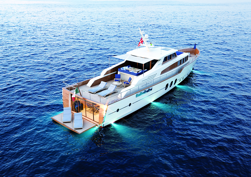 Kitalpha. A name that will take yachting enthusiasts all the way back to the 1950s and 60s and which a welcome comeback courtesy of Luca Dini. The new Kitalpha 22 offers a contemporary twist on a timeless yacht of Cantieri di Pisa. Available with either a steel displacement hull or aluminium semi-displacement one, it also has two opening transom options.