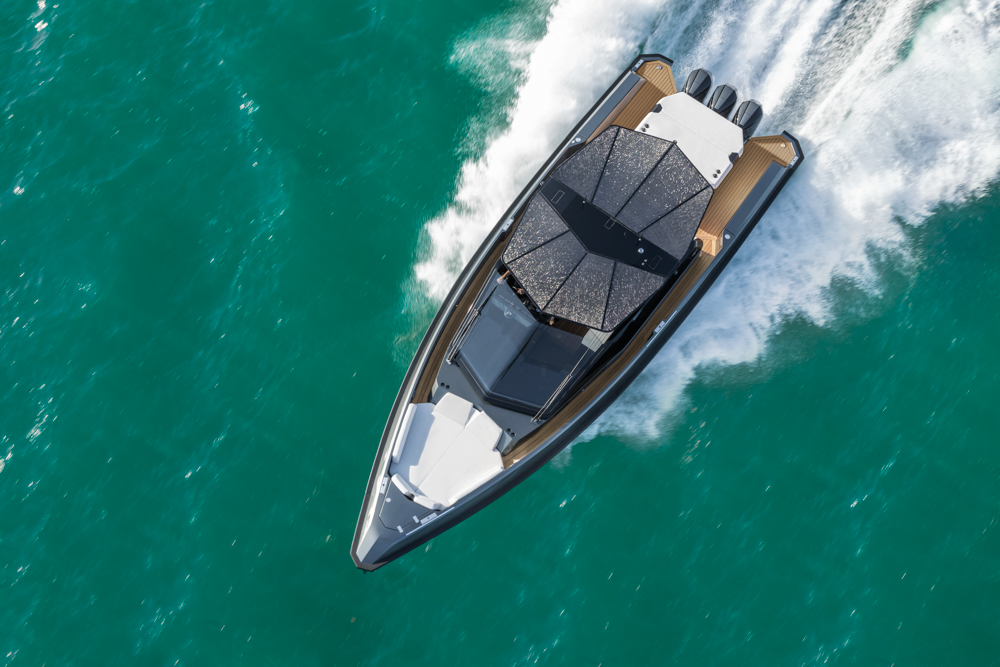 The inboard version of the yacht – the 43wallytender – was recently launched in 2020, debuting Wally’s innovative “center cockpit” design that offers the protection of a cockpit alongside the practicality and access of a walkaround, as well as a modular deck configuration that can adapt to an owner’s needs. The design combines the feeling of freedom in the open air and the security and comfort of a more enclosed yacht. And now, on the outboard version of the 13-meter yacht, owners can achieve even faster speeds and sportier performance while experiencing brand’s distinguished design pedigree. The 43wallytender X made its American debut at Palm Beach International Boat Show 2021, with the first unit being finished in Wally’s exclusive dark grey hue. The European premiere will take place at the upcoming Venice Boat Show (May 29 – June 6) where the stunning dark grey hue hull will turn heads once again.