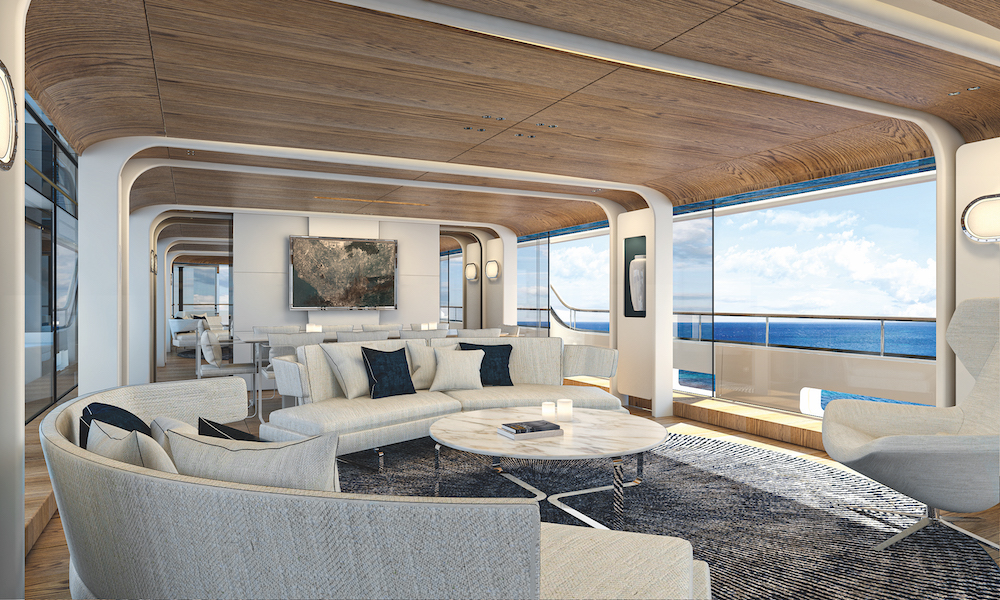 That same obsessive commitment to perfection was also applied to the rest of the yacht. The stern, for instance, has not just been integrated into the hull volume in an homage to the rounded sterns of yesteryear but also incorporates a sharply angled stern hatch that both adds sleekness to exterior lines and enlarges the beach club. The latter even has a spectacular integrated shell-like covering that can be deployed to create shade or privacy.