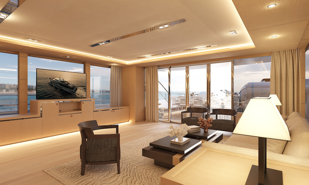 This frees up the stern which is home to a 40 sqm beach club. The interiors of the Bering 145 boast six cabins, five of which are on the lower deck. The master, on the other hand, is on the main and wrapped in over 9.5 sqm of panoramic windows. Also on the main is a large saloon with dining area. The sky lounge on the upper deck has a second dining area too.