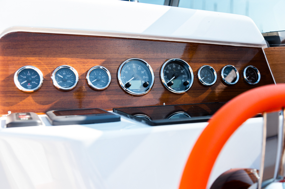 With two 320HP Yanmar engines and equipped with pods, the Heritage 9.9 has a cruising speed of 34 knots, top speed of 40 knots and a range of 170 NM at 30 knots. Sea trials confirmed the Heritage 9.9’s smooth and stable movement through the water and its excellent maneuverability even at high speeds. The on board experience is stable, quiet and comfortable and the cockpit stays completely dry even in choppy conditions.