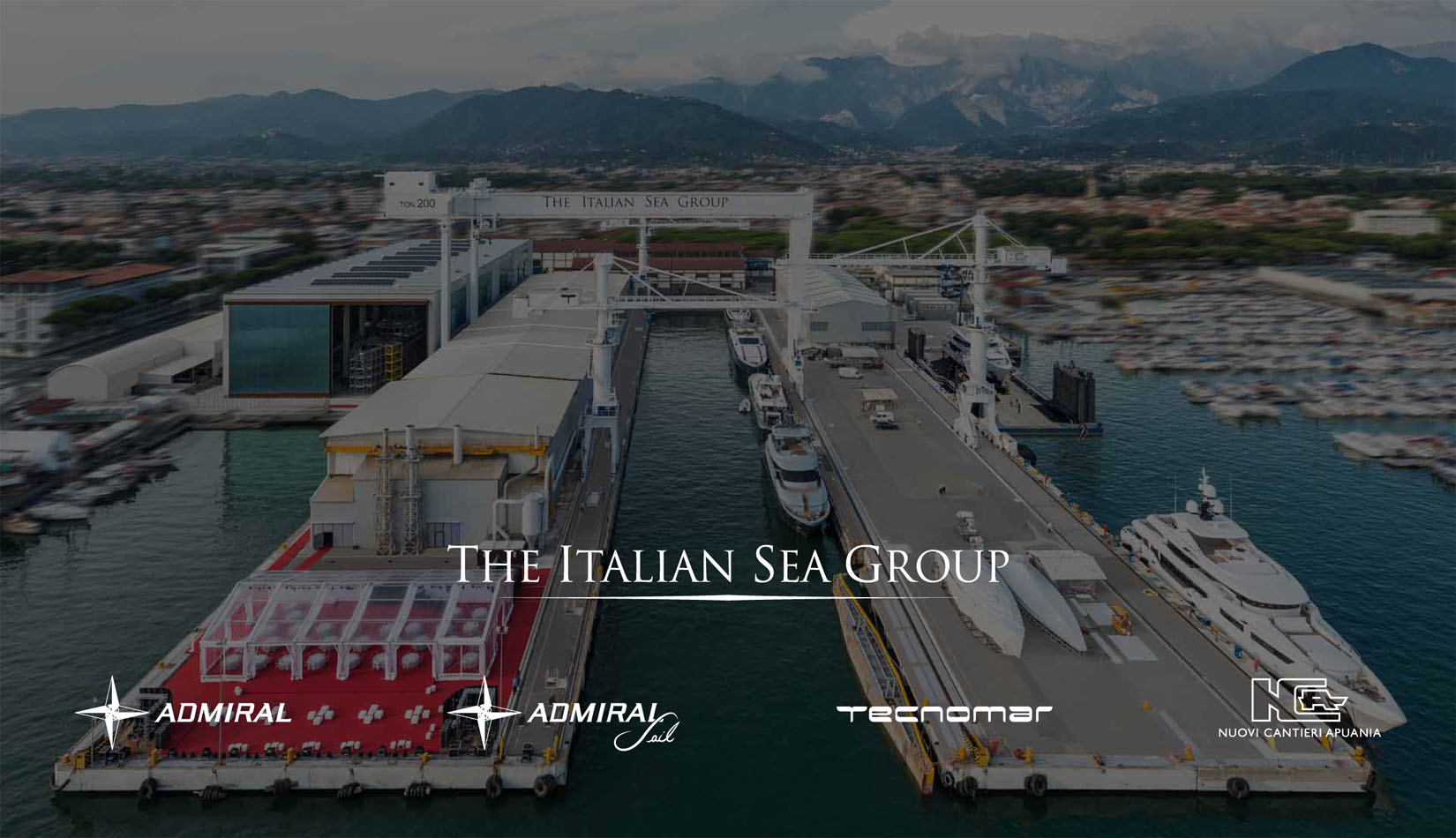 The Italian Sea Group is nowadays one of the greatest conglomerate groups of the Italian boating system. Managed by the entrepreneur Giovanni Costantino, four different brands are included in the Group: ·Admiral, Admiral sail and Tecnomar, luxury motor and sail yachting · NCA, naval construction and refit; The Group structure is the result of a series of acquisition completed in a very difficult moment of the entire nautical sector caused by the financial crisis. In 2009, the holding, of which Mr Costantino is the Chairman, took over Tecnomar historical brand of the Italian nautical sector, always synonymous of sportsmanship and cutting edge design. After slightly more than one year, Tecnomar acquired the brand Admiral present on the market for almost 50 years and always recognized and appreciated for elegance, classical spirit and prestige. At the end of 2012 the Group entered in naval mechanics system through the acquisition of Nuova Cantieri Apuania (NCA), company operating the shipbuilding in Marina di Carrara. The Italian Sea Group counts as a whole more than 170 employees. The shipyard in Marina di Carrara is about 100.000sqm and features several important facilities such as 11 production areas, 1000 mt dock 200 mt drydock and a total lifting capacity of 1000tons. The biggest, newly built shed can accommodate constructions up to 90 m, larger constructions or refits are to be built directly in the drydock. The elegant Group headquarters cover an area of 3600 mq featuring a contemporary art collection, dedicated bar and restaurant and a virtual cinema room. With 6 yachts up to 55m sold and currently under construction, The Italian Sea Group is one of the major players in the international boating industry. Every yacht is fully customized thanks to the in-house Style Centre made up of 12 interior designers able to meet every need or request of our Owners.