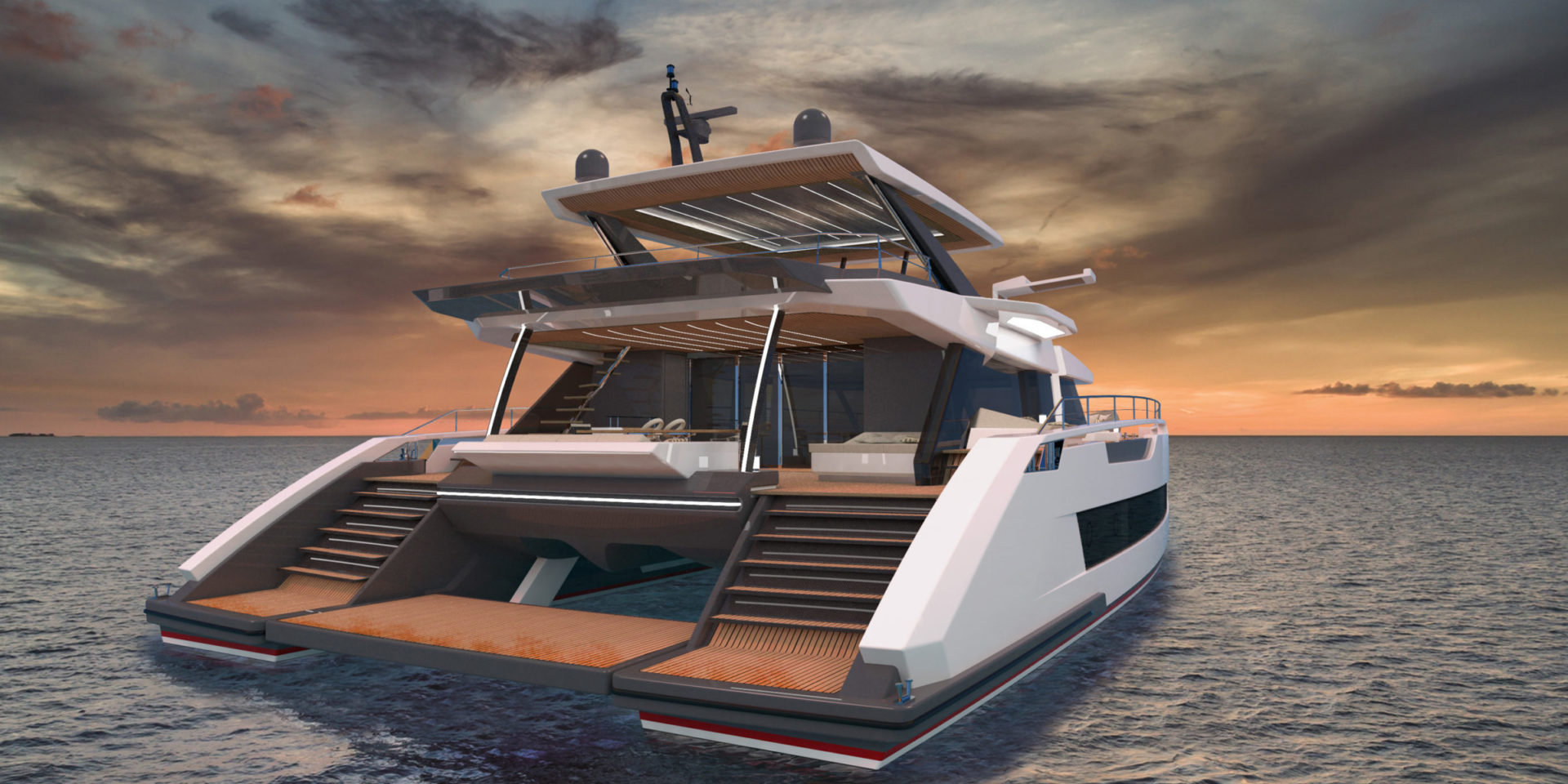 Penned by Borzelli&Berta this 24mt catamaran stems from the request for a concept, arrived from an client in the United States, for a hybrid propulsion catamaran at the end of 2019.