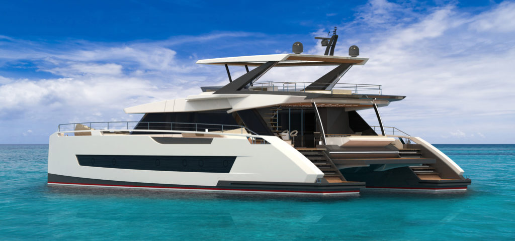 Penned by Borzelli&Berta this 24mt catamaran stems from the request for a concept, arrived from an client in the United States, for a hybrid propulsion catamaran at the end of 2019.