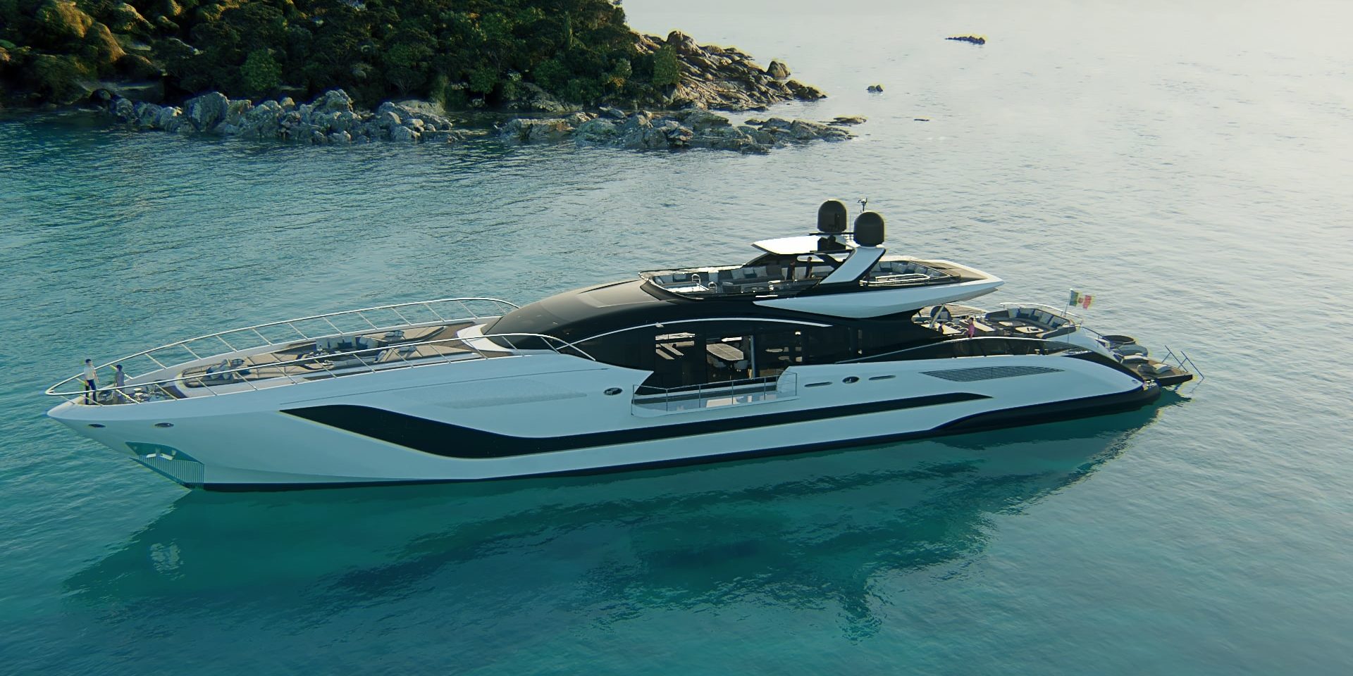 The 165 REV stands out for her aggressive profile featuring the rounded, curved shapes typical of Mangusta’s iconic style. Her slender, dynamic lines have drawn inspiration – as the designer explains – from 1930s sporty cars. This means classic, timeless beauty, which, however, on this model, goes hand in hand with dramatically scaled-up performances and a refreshed, renovated concept of lifestyle. Key elements on the 165 REV, just like on all Mangusta yachts, are the impressive onboard volumes, the comfort of en plein air areas, and the smooth, uninterrupted flow between the interiors and exteriors. On this vessel, the Owner can decide to experience life at sea in the utmost privacy or relax in one of the many convivial areas, enjoying his holiday surrounded by a different landscape every day and quickly moving from one destination to the next – for example, waking up in Portofino and sipping a cocktail in front of Costa Smeralda a few hours later.