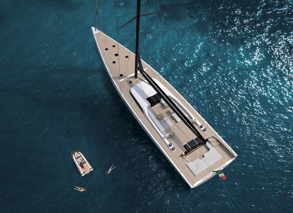 “Normally in Raised Saloon boats with the engine room under the saloon, the deckhouse is very obvious and bulky. But we worked very hard with Soto and MYT and feel that we have solved that issue with this new design”. Different materials are used in the various spaces: Canaletto walnut, fabrics, Alcantara. We used design cleverly organised spaces, finishes and wood grains to demonstrate that a sailing superyacht can be just as sophisticated and comfortable as a motor one”.