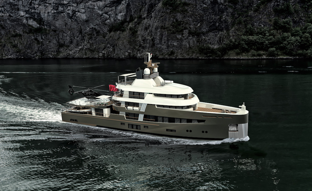 The tender is located aft and topped by a special surface capable of taking the weight of a helicopter. The yachts will be built in Poland by Conrad Yachts.
