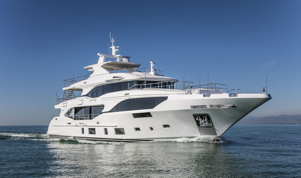 M/Y “Good Day”, is a 35.5-meter yacht with fibreglass hull and carbon fibre superstructure. She is the fourth model of Mediterranean 116 and also in this model the external lines, sinuous and slender, are by Giorgio M. Cassetta. The Benetti Interior Style Department created the interiors playing on the alternation of Tay, Tanganyika and Olmo woods to create a strong differentiation of environments. In addition to wood, the yacht is embellished with marble details and mosaics that characterize the bathrooms.