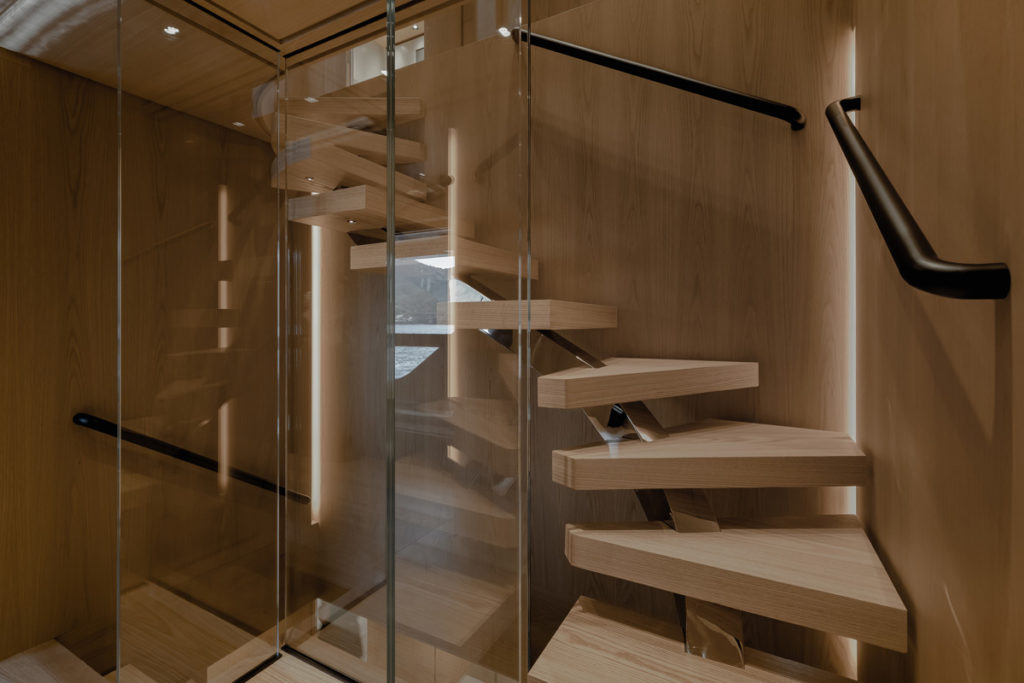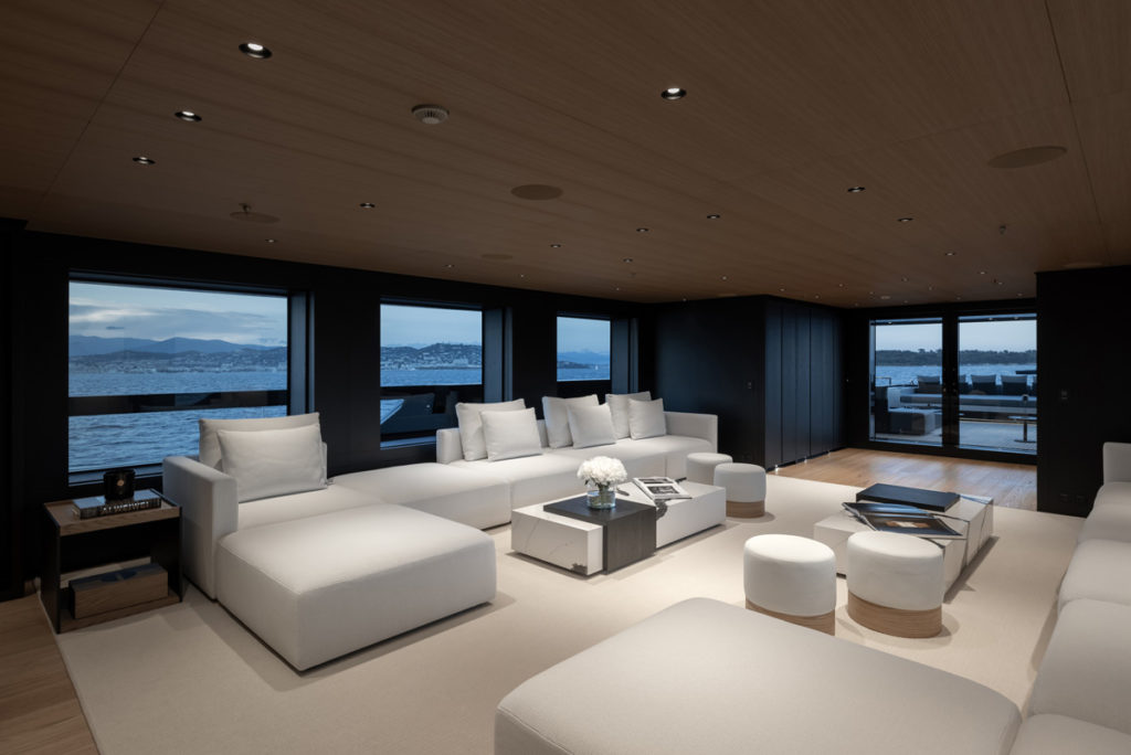 “As we already know from experience, the interiors of yachts are often quite small and we always suggest to the owners to create open environments where they can enjoy the view and the interiors at the same time,” says Rodriguez. “We focused on making the entire interior of the yacht convey a sense of residential life by reflecting the exterior and transforming the interior into a complete nautical experience.”