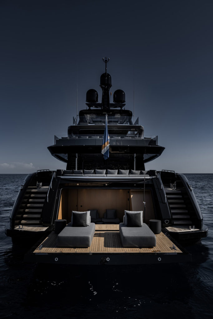 • The side-loading tender garage in the stern has been converted into an extension of the beach club as the owner prefers to use a 15mt chase boat (although it is fully equipped with telescopic crane to fulfill its original function).
