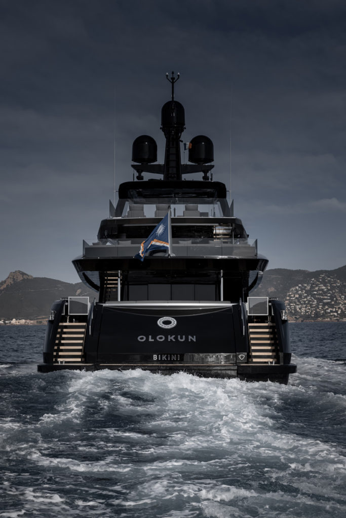 Olokun’s exterior and layout were crafted to deliver a rigorous stylistic coherency with a clean, contemporary look. It has also maintained its predecessor’s signature features like fold-down terraces in the master stateroom on the forward main deck, a large sundeck with bar and hot-tub and a spacious beach club with spa in the transom.