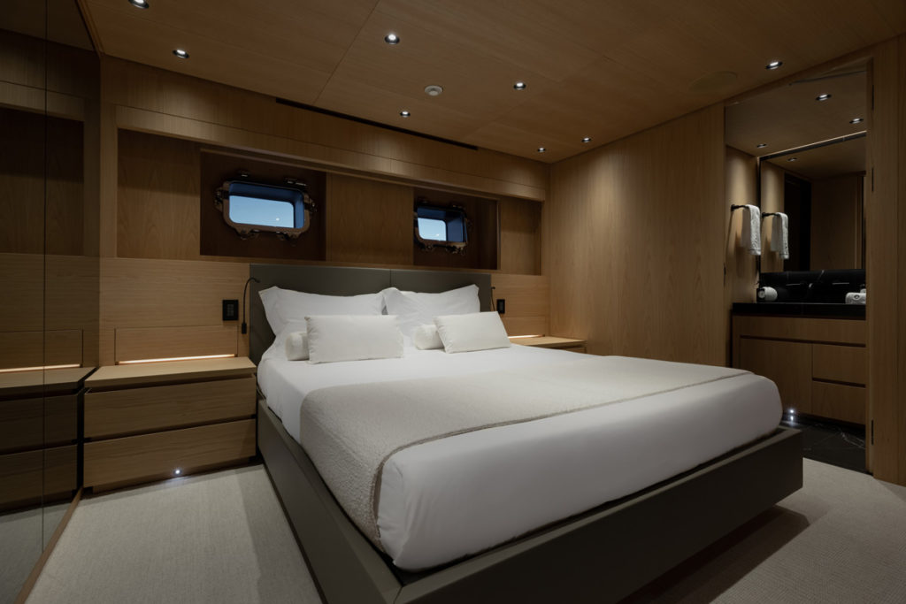 • In addition to the four guest suites on the lower deck, the master stateroom features a private office that can be converted into an extra cabin;