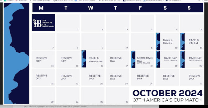 The Match between the defender and the winner of the Challenger Selection Series will be a best of 13 races and therefore whoever arrives first at 7 wins will win. There are two races per day with reserve days and one “free day” which, at the discretion of the Race Director, and after consulting Defender and Challenger, could still be used for other double daily races. There will be one day, October 16, with only one regatta to make space for the Women’s America’s Cup final who will have started their regattas aboard the AC40s on October 3 (for Youth America’s Cup the dates are September 19-October 2). The objective of the Event Authority is to have racing concluded over the weekend of the 19th/20th October 2024, however the schedule does allow for racing to continue into the following week from the 21st October 2024 through to the 27th October 2024.