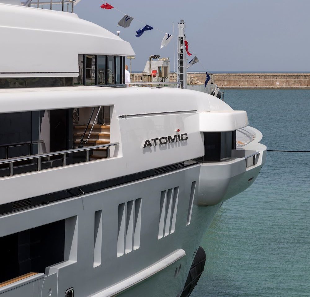 Atomic is a real floating wonder of sophistication, which integrates advanced technical elements and top engineering solutions to further augment the simplicity and governability, such as a dynamic positioning system, diesel electric thrusters and higher-powered generators encased in sound-insulated cabins.
