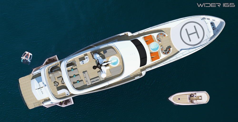 The beating heart of the WIDER 165’ project is its diesel electric propulsion system combined with a 544kWh Lithium polymer battery bank and Azimuthal pods, which guarantees hugely reduced fuel consumption.