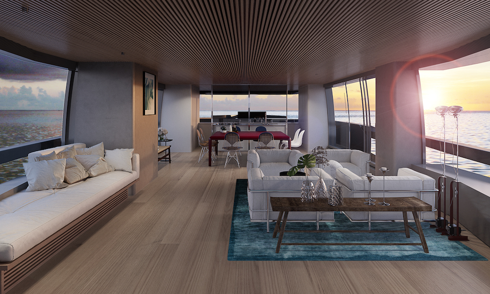 Not only that, most of the furniture will be free standing to allow owners to arrange it according to the needs of the moment. One of the highlights is undoubtedly the large relaxation area in the bow with tables, sofas and sundecks.